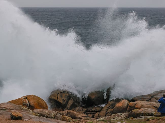 Un turista fotografía las olas en Muxía. L / Lavandeira jr (EFE)