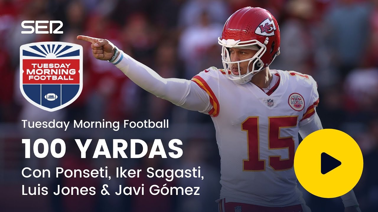 No te pierdas el 'Tuesday Morning Football', el programa de 100 Yardas con imágenes exclusivas de fútbol americano que podrás disfruta cada martes desde las 7:00 de la mañana en las webs de la 'Cadena SER', 'Diario As', 'El País' y 'LOS40' en un formato del programa adaptado a redes sociales para hacer llegar la NFL al mayor número de espectadores en nuestro país.