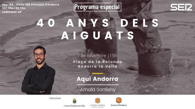 El 7 de novembre es compleixen 40 anys dels aiguats, la major catàstrofe natural patida mai a Andorra i que es va saldar amb nou víctimes mortals i danys materials valorats en més de 1.500 milions de les antigues pessetes. I Ràdio SER Principat d'Andorra ho commemorarà amb un programa especial en directe des de la plaça de la Rotonda, epicentre del desastre, amb un monogràfic obert al públic.
