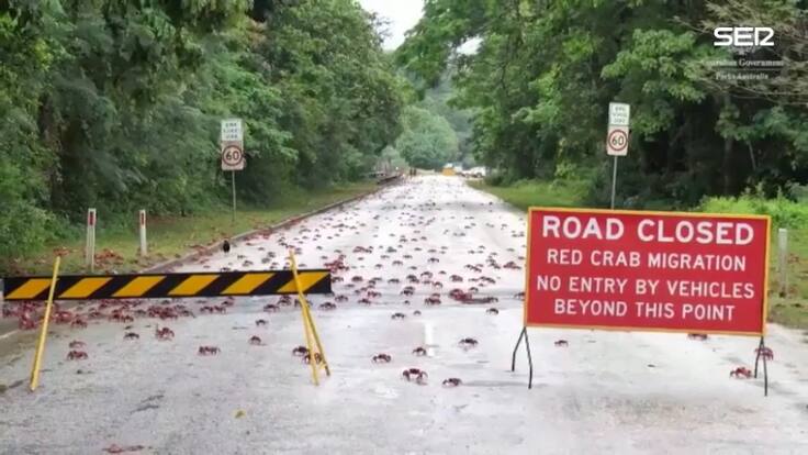 Cada año miles de cangrejos rojos cruzan carreteras y trepan puentes en su migración anual en la Isla de Navidad. Varias carreteras se ven obligadas a cerrar el paso para permitir que crucen de forma segura la isla australiana. Los animales emergen del centro de la isla e inician su viaje al mar para desovar frente a la costa de Australia occidental días después.