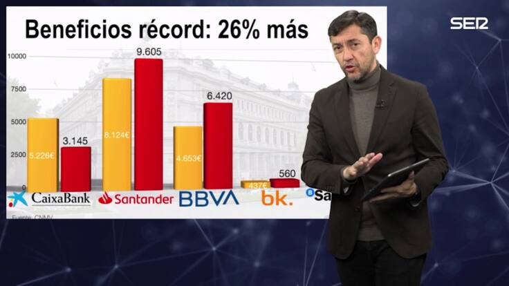 La banca ha registrado beneficios récord, nunca habían ganado tanto. Con datos, los bancos han ganado un 26% más que el año pasado, más de 21.000 millones solo los cinco más grandes de España. Santander ha recaudado 9.600 millones en un año, BBVA 6.400 millones y CaixaBank 3.000 millones. En todo caso, son ganancias que están entre el 18 y el 35% más que el año pasado.