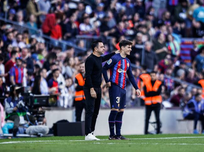 Xavi junto a Gavi, en un partido del FC Barcelona en el Spotify Camp Nou. / Gongora