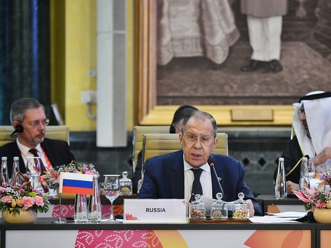El ministro de Exteriores ruso, Sergei Lavrov, coincide en la reunión del G20 en la misma mesa con el Secretario de Estado de Estados Unidos por primera vez desde el pasado verano / INDIAN MINISTRY OF EXTERNAL AFFA (EFE)