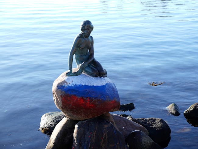 La emblemática 'Sirenita' de Copenhage, vandalizada con los colores de la bandera rusa