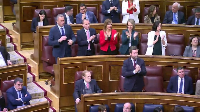El aplauso de la bancada de Vox ha llegado tras su discurso. Ha llamado la atención que el candidato Ramón Tamames ha permanecido impertérrito sin hacer ningún amago de aplaudir. Esa actitud se ha mantenido durante los 65 minutos aproximadamente de intervención de Abascal.