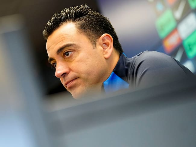 El entrenador del FC Barcelona, Xavi Hernández, durante la rueda de prensa. / Enric Fontcuberta (EFE)