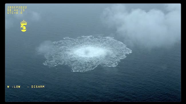 Imagen de una de las fugas en el gasoducto Nord Stream 2 captada por las autoridades de Suecia / Anadolu Agency
