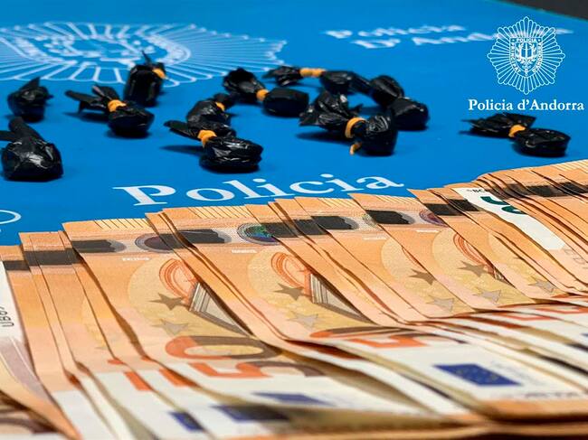 Droga i diners decomisats en la detenció d'un presumpte traficant de Cocaïna a Santa Coloma. / Policia d'Andorra