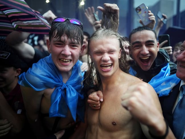 Haaland posa para una foto con aficionados, durante una de las celebraciones del City. / Tom Flathers