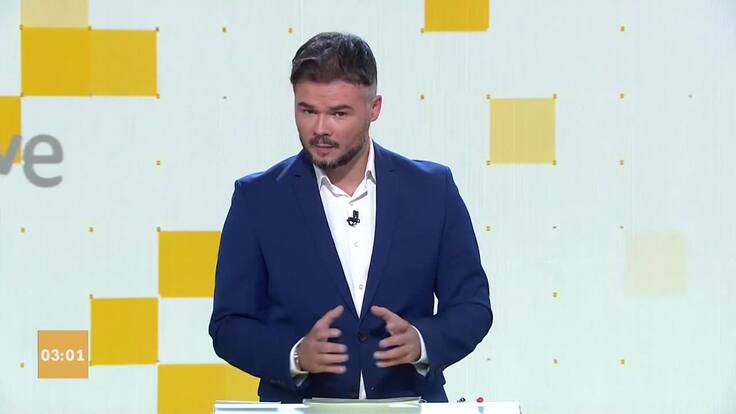 Rufián habla de las grandes fortunas en el debate de RTVE y no se olvida de uno de los protagonistas en sus discursos: "Quizá la tenga"