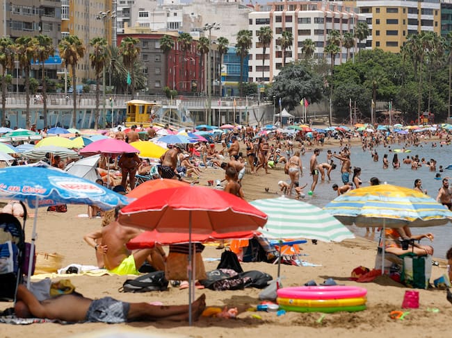 Cientos de personas en la playa de Las Alcaravaneras de Las Palmas de Gran Canaria este sábado. EFE/ Elvira Urquijo A. / Elvira Urquijo A. (EFE)