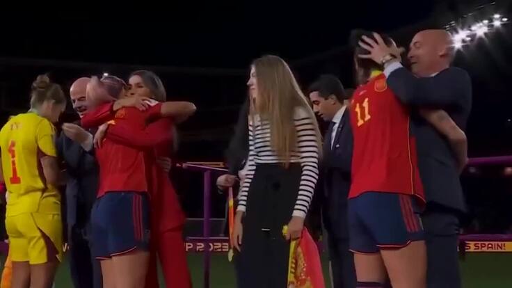 El vídeo del momento muestra cómo el presidente de la RFEF abraza a la jugadora y tiene una conversación de apenas segundos. "Dame un piquito", parece pronunciar. Aparentemente, Rubiales agarra entonces la cabeza de Hermoso y le planta un beso sin que la futbolista tenga siquiera tiempo de reaccionar a sus palabras.