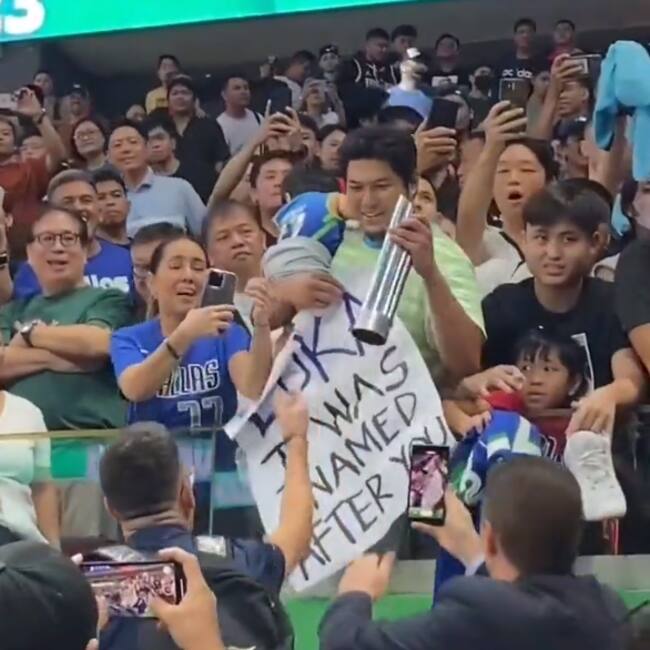 Al final del encuentro, el jugador de los Dallas Mavericks portaba su trofeo de MVP del partido en la mano cuando se ha percatado de una pancarta en las primeras filas de las gradas. Una familia con un bebé había escrito 'Luka, me llamaron así por ti' en una lona, y al verla, el jugador se los señaló a uno de los asistentes para que les acercara el trofeo. La familia, emocionada, agredeció el gesto al jugador desde la grada.