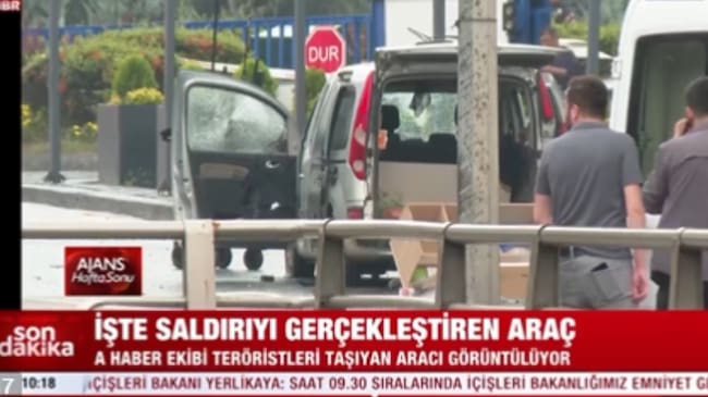 Captura de una televisión turca que muestra un coche siendo estudiado por los artificieros