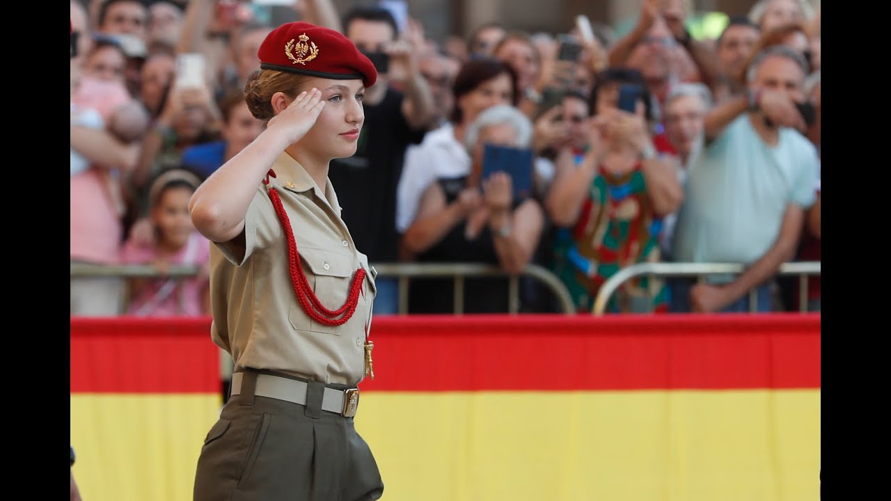 La futura capitana general de las Fuerzas Armadas inició el pasado 17 de agosto su formación militar en 'La General', como se conoce popularmente a la Academia del Ejército de Tierra y tras completar la primera fase de su instrucción y recibir el sable que la acredita simbólicamente como dama cadete, este sábado ha cumplido con el acto más trascendental en la vida de los militares, la jura de la bandera.