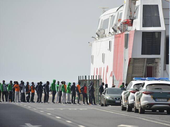 Unos 550 personas que habían llegado a la isla de El Hierro en los últimos días en varios cayucos han sido trasladados este sábado en un barco fletado por la Administración Central a Tenerife. EFE/Gelmert Finol / Gelmert Finol (EFE)