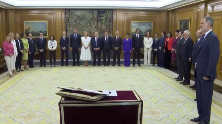"Prometo por mi conciencia y honor cumplir fielmente las obligaciones del cargo de ministro, con lealtad al rey, y guardar y hacer guardar la Constitución como norma fundamental del Estado, así como mantener el secreto de las deliberaciones del Consejo de Ministros y Ministras", ha sido la fórmula que han utilizado los miembros del nuevo Ejecutivo.