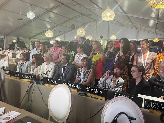 La delegació andorrana present al 18è comitè intergovernamental del patrimoni cultural immaterial de la Unesco celebrat a la República de Botswana durant el qual s'ha declarat la transhumància andorrana com a patrimoni immaterial de la humanitat. / Govern d'Andorra