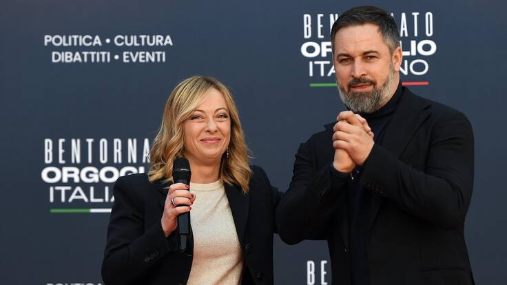 El líder de Vox, Santiago Abascal, con la primera ministra de Italia, Giorgia Meloni. / Europa Press