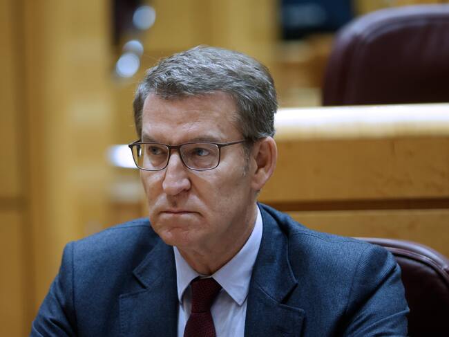 El líder del Partido Popular, Alberto Núñez-Feijóo, durante un pleno del Congreso celebrado excepcionalmente en el Senado, este miércoles en Madrid. EFE/ Mariscal / Mariscal (EFE)
