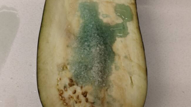 "No es un alien con sangre verde": la explicación de por qué esta berenjena suelta un extraño líquido pocas veces visto