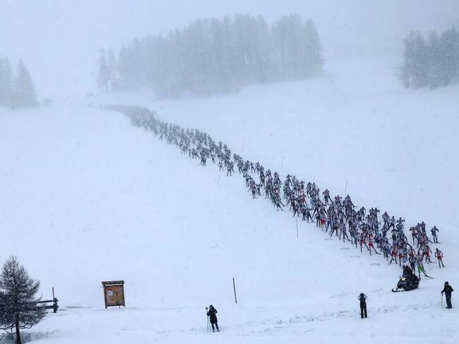 Sortida del grup d'Skimartathon a Engadin on ha competit Irineu Esteve. / Andy Mettler