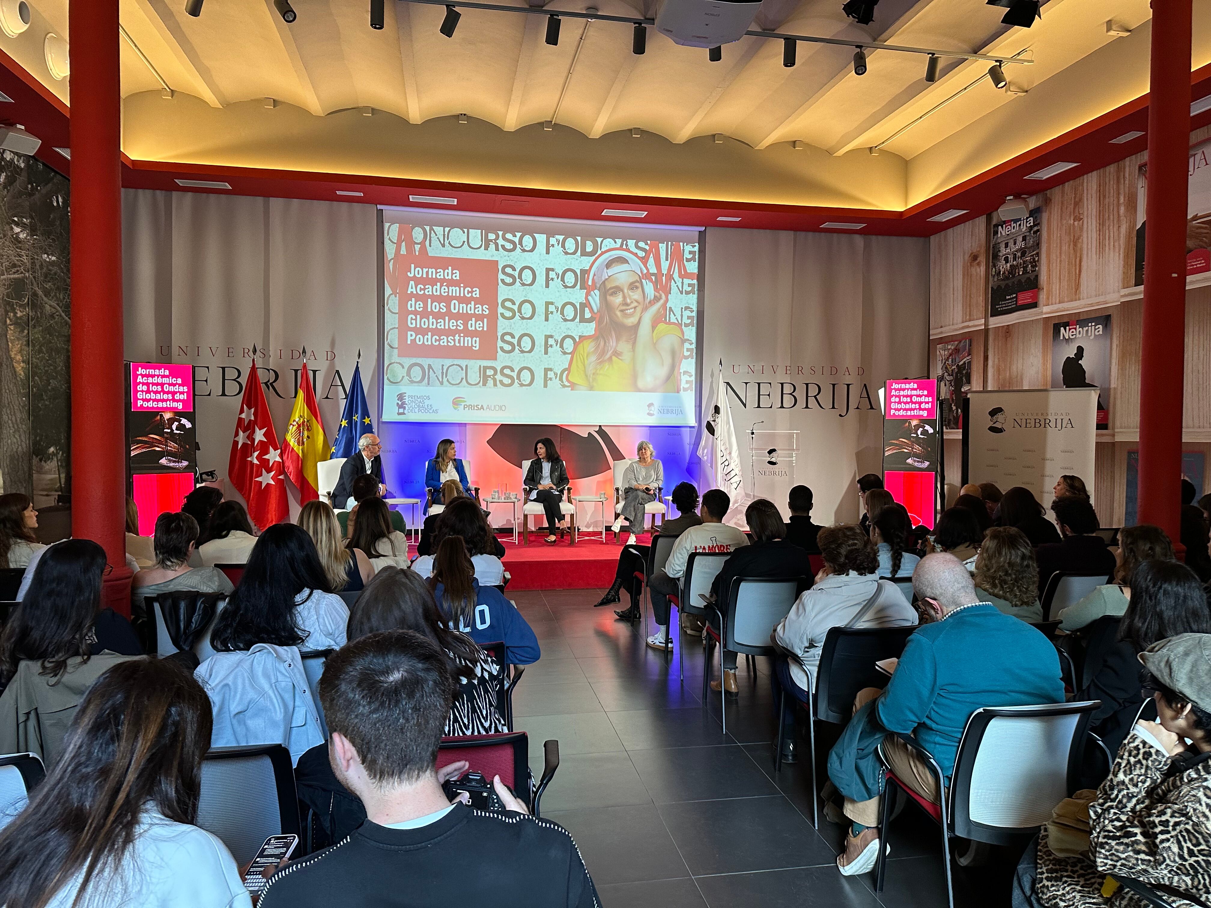PRISA Audio y la Universidad Nebrija han organizado las III Jornadas Académicas de los Ondas Globales del Podcast. El evento ha contado con la presencia de personalidades como María Jesús Espinosa de los Monteros, Ana Ribera-García, Nerea Pérez De Las Heras, Manuel Bartual o Víctor Clavijo, entre otros, que han debatido sobre el presente y el futuro de este medio.
