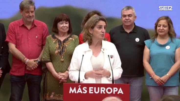 La cabeza de lista del PSOE para las elecciones europeas, Teresa Ribera, ha afirmado que el resultado del PSOE es el mejor que ha obtenido un partido de gobierno en las europeas y ha reconocido el "resultado electoral del PP con algunos matices a destacar".