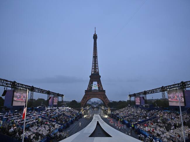 Vista general de la Plaza del Trocadero a la llegada de las delegaciones olímpicas para el encendido de la antorcha olímpica, durante la ceremonia de inauguración de los Juegos Olímpicos de París 2024, este viernes en la capital francesa. / Joel Marklund (EFE)