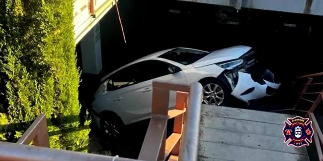 Los efectivos de Bomberos de Alcorcón se desplazaron hasta el lugar de los hechos en la tarde del pasado sábado después de recibir un aviso por un accidente de tráfico. Una vez llegaron en rescate de los implicados en el suceso, se encontraron el vehículo todavía encajado en el hueco. Como se puede comprobar en el vídeo que los propios servicios de Bomberos y Protección Civil han publicado en su cuenta oficial de X, se vieron obligados a cortar con una radial la barandilla de metal de las escaleras para poder desencajar y mover el vehículo implicado en el accidente.