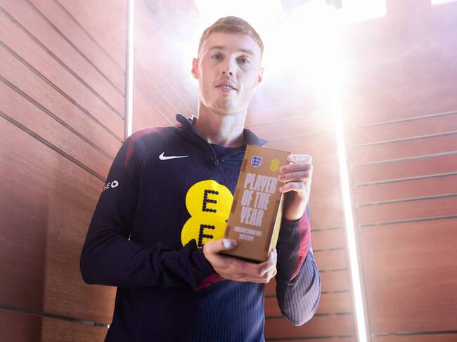 Cole Palmer posa con el premio de mejor jugador de Inglaterra / Eddie Keogh - The FA