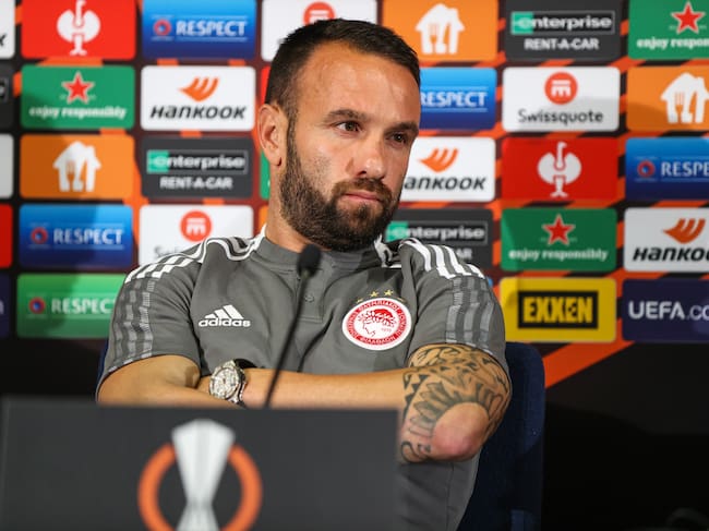 Mathieu Valbuena, durante una rueda de prensa en su etapa con Olympiacos / Anadolu