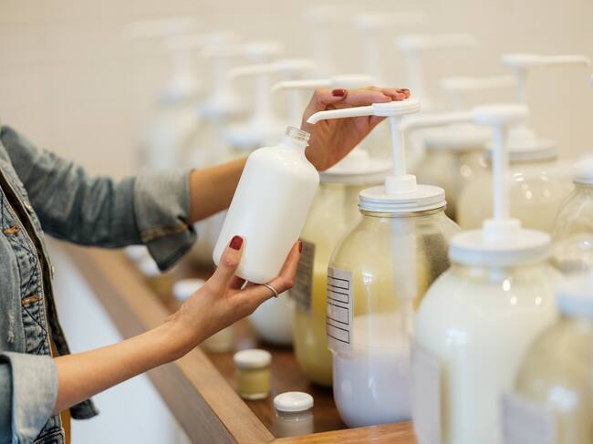 Una joven sosteniendo un recipiente de loción / Aldo Murillo