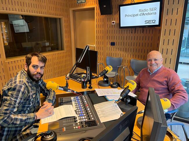 El president del COA, Xavier Espot Miró, als estudis de la SER per participar en l'entrevista al programa Aquí Esports / Ràdio SER Principat d'Andorra