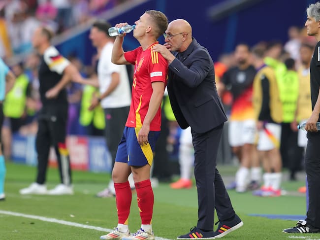 Luis de la Fuente da instrucciones a Dani Olmo durante la Eurocopa 2024 / Jürgen Fromme - firo sportphoto