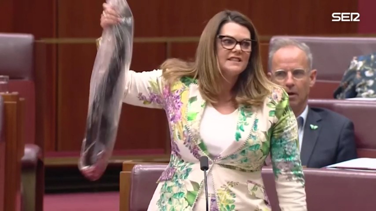 Una senadora australiana ha sacado un "salmón podrido, maloliente y en extinción" en medio de un debate parlamentario para protestar por las piscifactorías de Tasmania. Se trata de la senadora del grupo de los Verdes Sarah Hanson-Young, que intervino para protestar contra las leyes que, según denuncia, favorecen a las piscifactorías de salmón en Tasmania y amenazan a la raya de Maugean, una especie en peligro de extinción vinculada a la era de los dinosaurios.