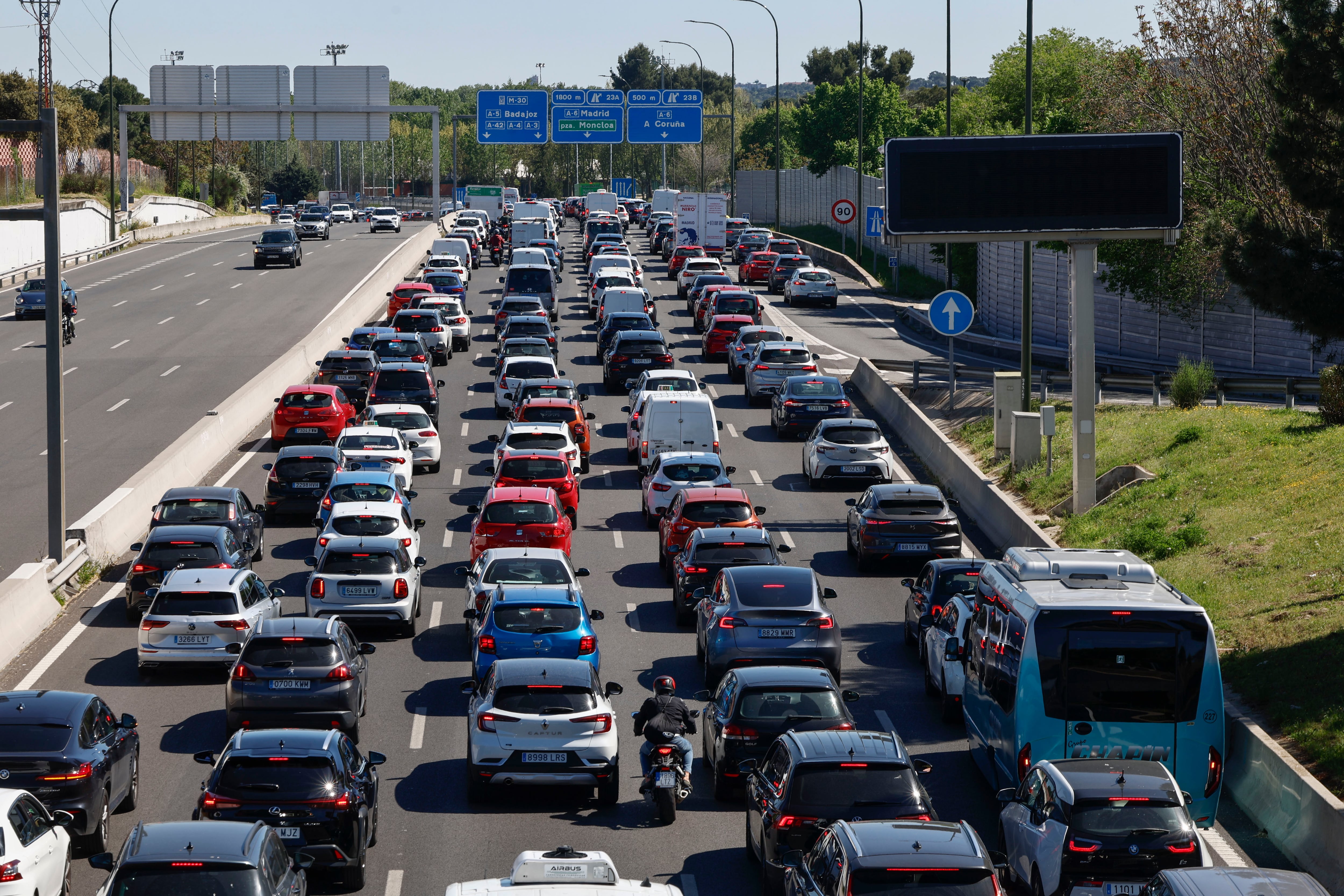 El apagón también afectó al tráfico: se pidió reducir la movilidad a lo esencial y la falta de suministro dejó sin luz a los semáforos, por lo que la circulación era lenta y algunas autovías, como la M-30 de Madrid, cerraron sus túneles por precaución y para prevenir posibles accidentes.