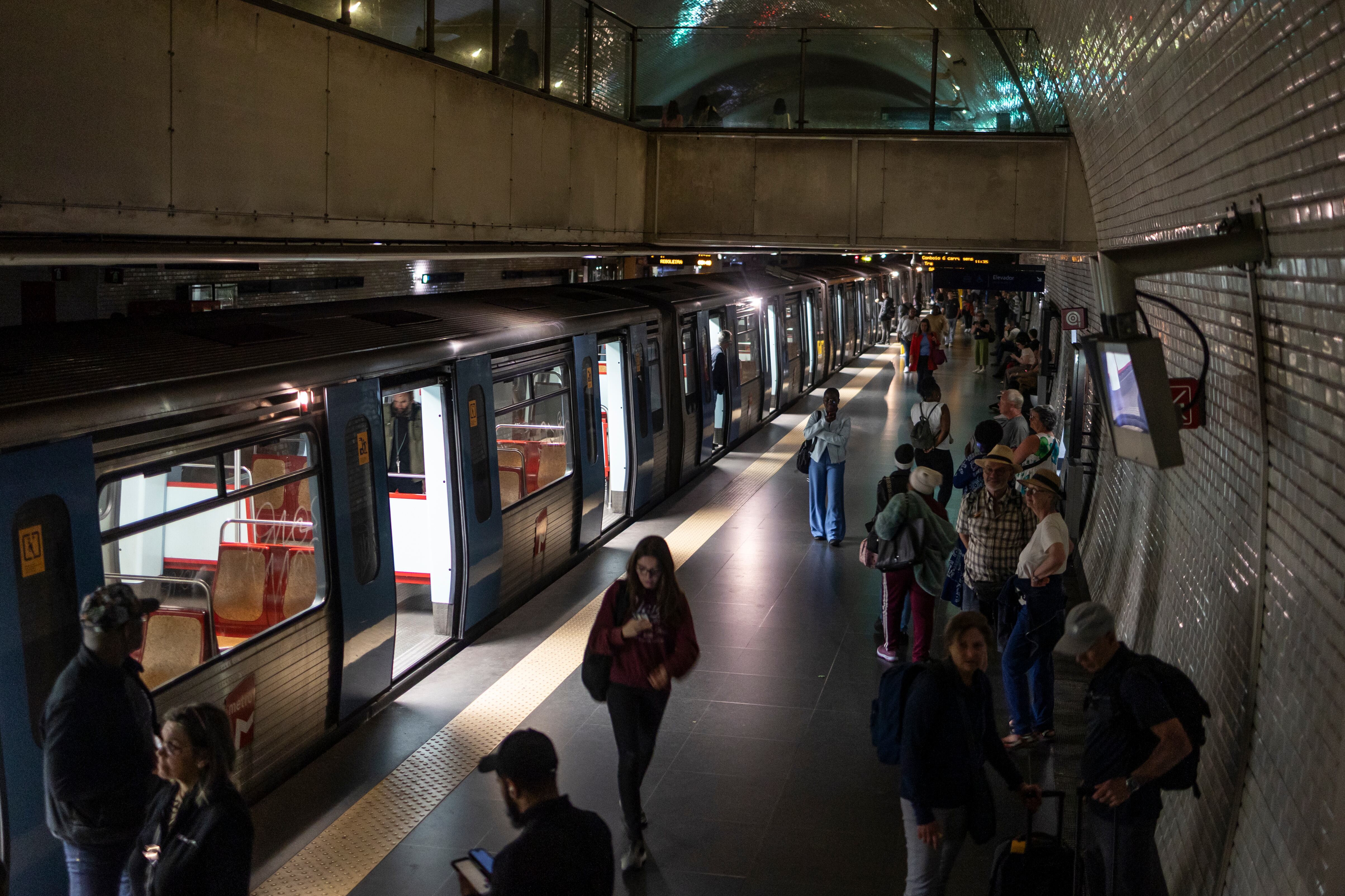 Personas bajando del metro en la estación de Baixo-Chiado después de l apagón en Portugal / NurPhoto