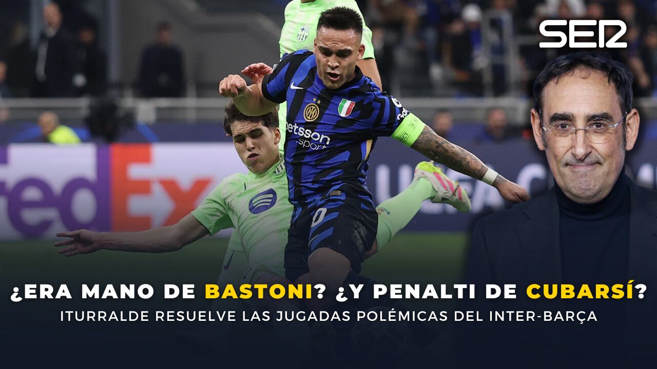 El árbitro de Carrusel Deportivo analiza la polémica de la mitad mitad: la posible mano de Bastoni y el penalti de Pau Cubarsí a Lautaro Martínez.