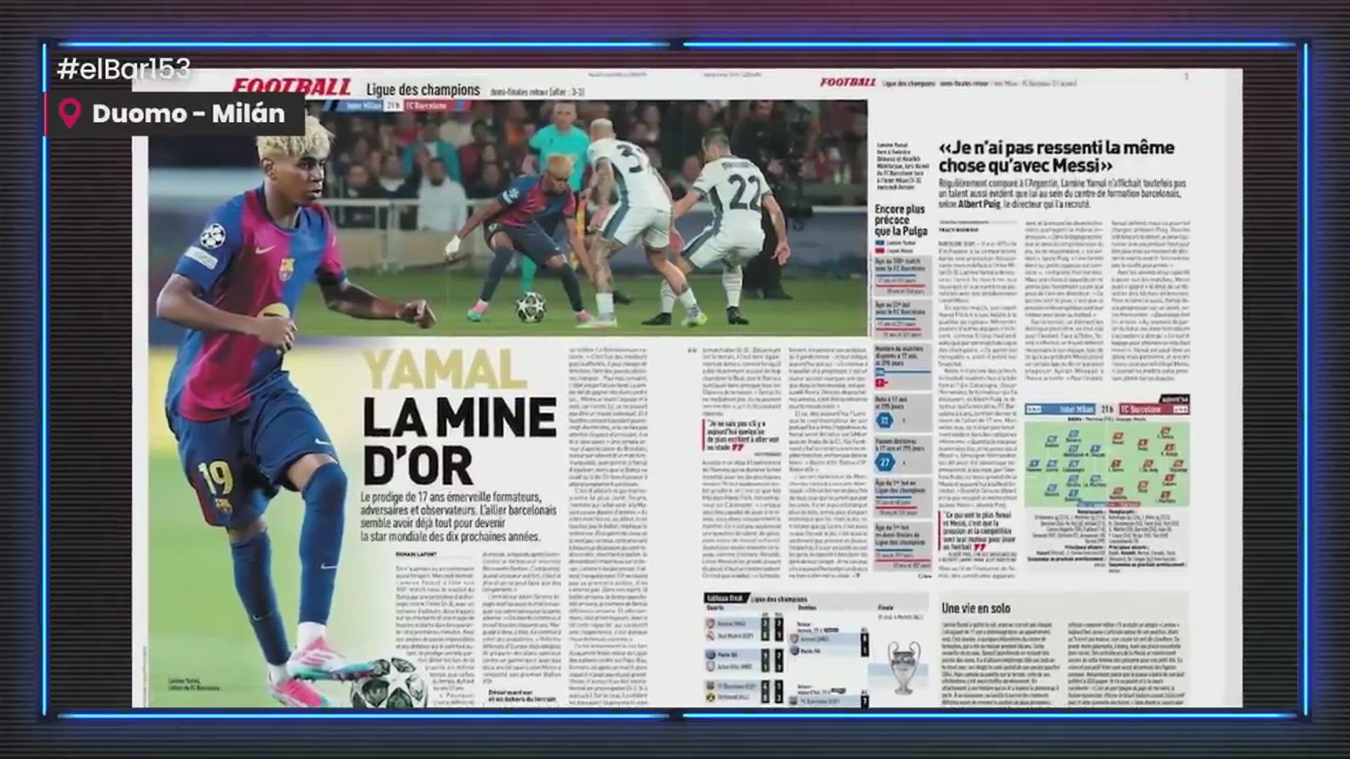 Más allá de estos nombres propios, hay uno que sobresale por encima del resto: el de Lamine Yamal. Tal y como explica Lluís Flaquer en 'El Bar', presentado por Sique Rodríguez, desde Milán se percibe que es el jugador al que elogia la prensa de todo el mundo. "Hacía tiempo que no veía una previa de una semifinal de Champions tan focalizada en un solo jugador. Es el gran 'boom' del fútbol europeo esta temporada porque es un jugador de presente y futuro. La prensa italiana se plantea cómo frenar a Lamine", asegura desde la ciudad italiana el narrador de los partidos del Barça en la SER.