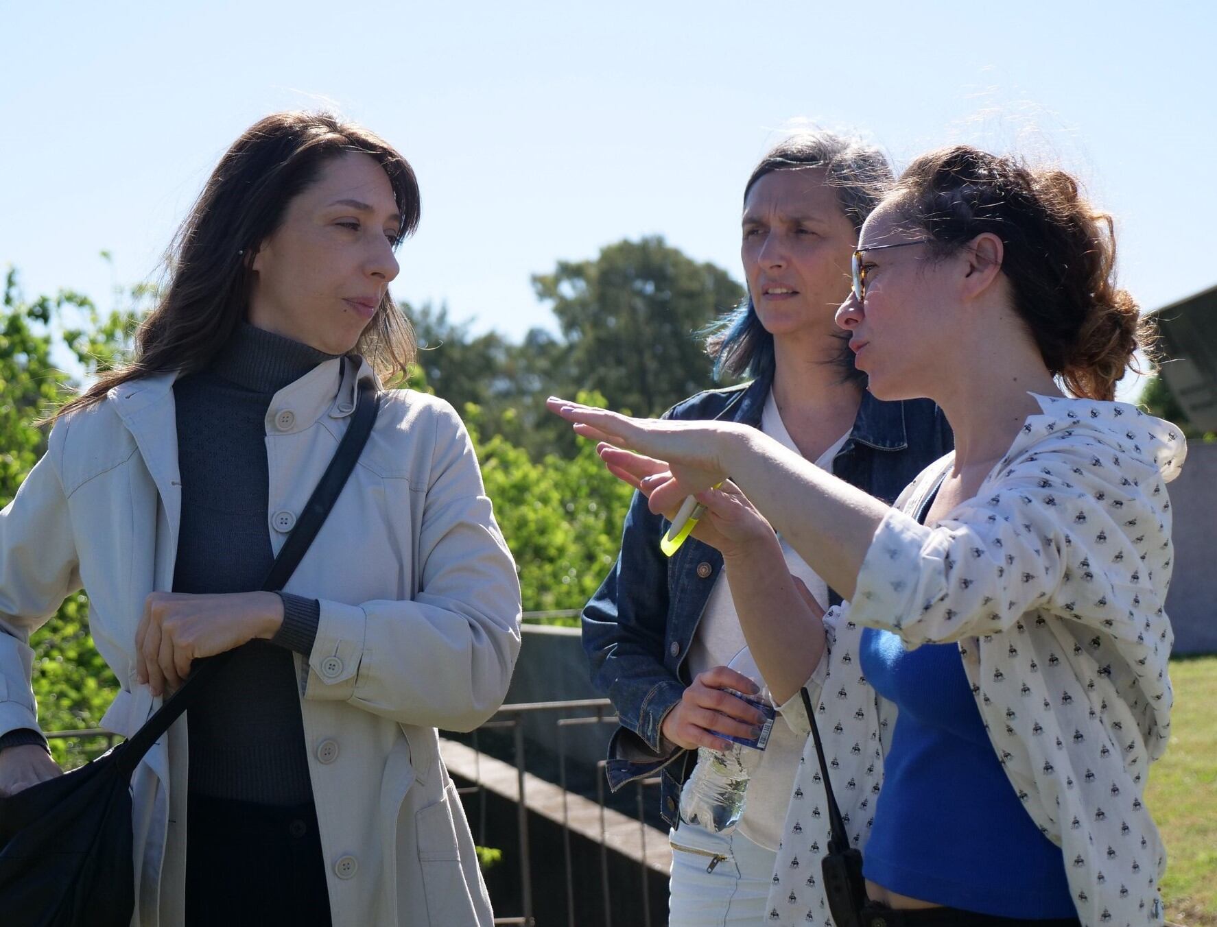 Maricel Álvarez, actriz protagonista, y las directoras durante la grabación de una escena del largo / BTEAM