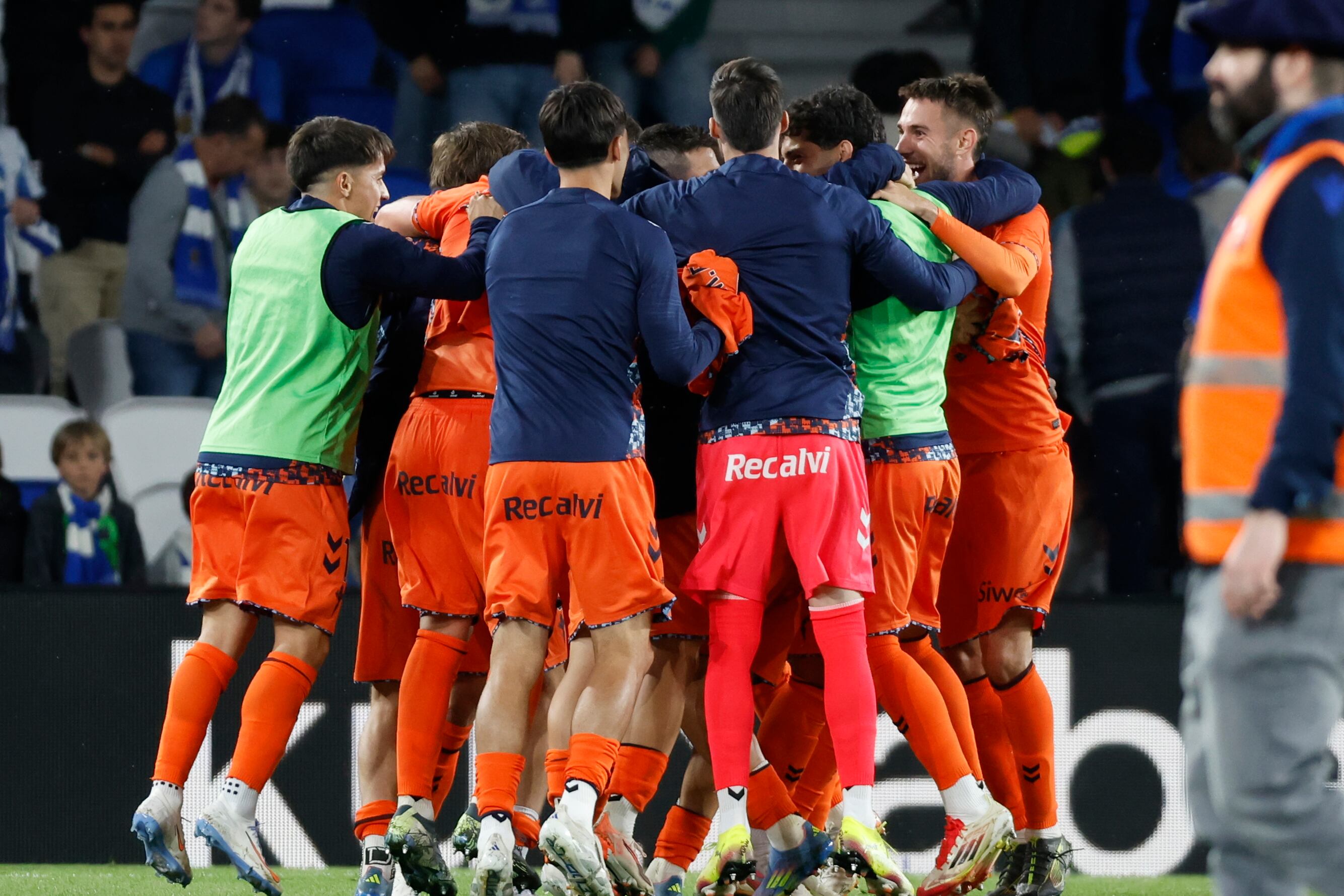 SAN SEBASTIÁN, 13/05/2025.- Los jugadores del Celta celebran la victoria al finalizar el partido de la jornada 36 de LaLiga EA Sports que Real Sociedad y Celta de Vigo disputaron este martes en el estadio Reale Arena, en San Sebastián. EFE/Juan Herrero