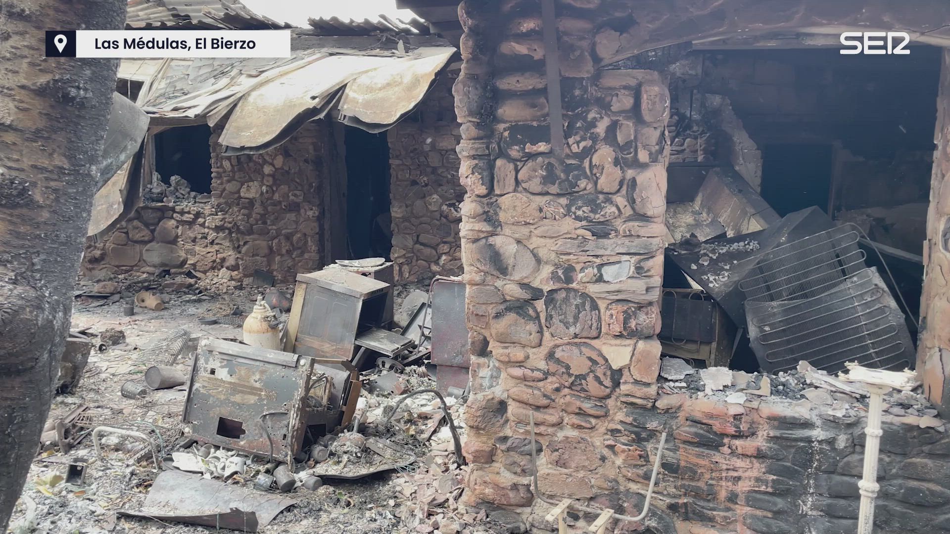 Entramos con ellos en los restos de su hogar y su negocio, arrasados por el fuego
