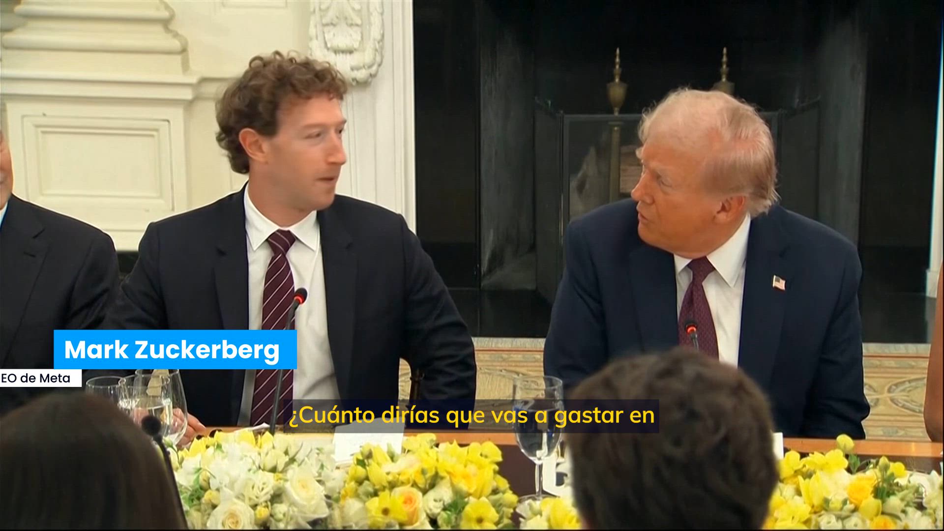 Mark Zuckerberg, el CEO de Meta, también tomó la palabra y ensalzó que las empresas reunidas en esa cena han hecho "enormes inversiones en el país para construir centros de datos e infraestructura para impulsar la próxima ola de innovación". Trump le preguntó que cuánto se gastarán en los próximos años, a lo que Zuckerberg contestó: "Unos 600.000 millones de dólares hasta 2028 en Estados Unidos. Es significativo".
