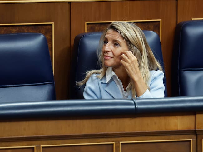 La vicepresidenta segunda, Yolanda Díaz, durante el pleno celebrado en el Congreso de los Diputados este martes. / J.P.Gandul (EFE)