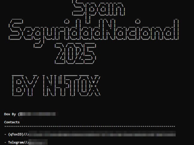 Un canal de Telegram con solo 64 seguidores - la Cadena SER ha optado por no dar el nombre para no exponer información sensible- publicó un enlace que contenía un documento con siete páginas de datos personales de altos cargos relacionados con la seguridad nacional. El ciberataque ha sido reivindicado por un hacker con el alias 'N4T0X'. Su acción iba acompañada del siguiente mensaje: "Este mensaje no es para buscar sonido ni para salir en titulares. Es una advertencia clara: la corrupción y la falta de ayudas han llevado a esta filtración. El pueblo exige transparencia y justicia. Vuestras acciones tienen consecuencias".