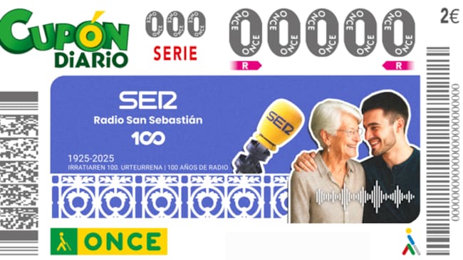 El sábado 4 de octubre, la ONCE dedicará su Cupón de Fin de Semana a Radio San Sebastián a través de cinco millones y medio de cupones que difundirá la imagen de la emblemática emisora con motivo del centenario de su fundación.
