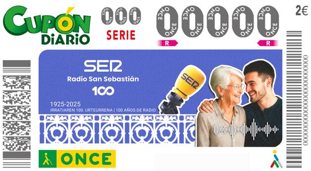 El sábado 4 de octubre, la ONCE dedicará su Cupón de Fin de Semana a Radio San Sebastián a través de cinco millones y medio de cupones que difundirá la imagen de la emblemática emisora con motivo del centenario de su fundación.
