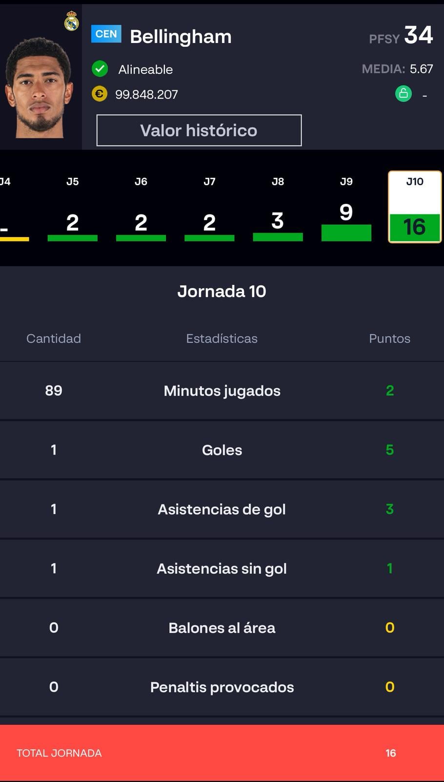 Jugadores con más puntos de la jornada 10