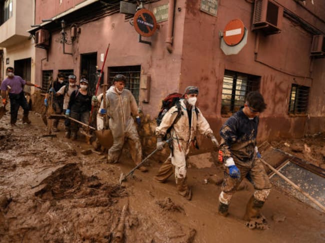 Valencia - Voluntarios caminan por el barro en la calle mientras el área se recupera de las inundaciones generalizadas por la DANA / David Ramos